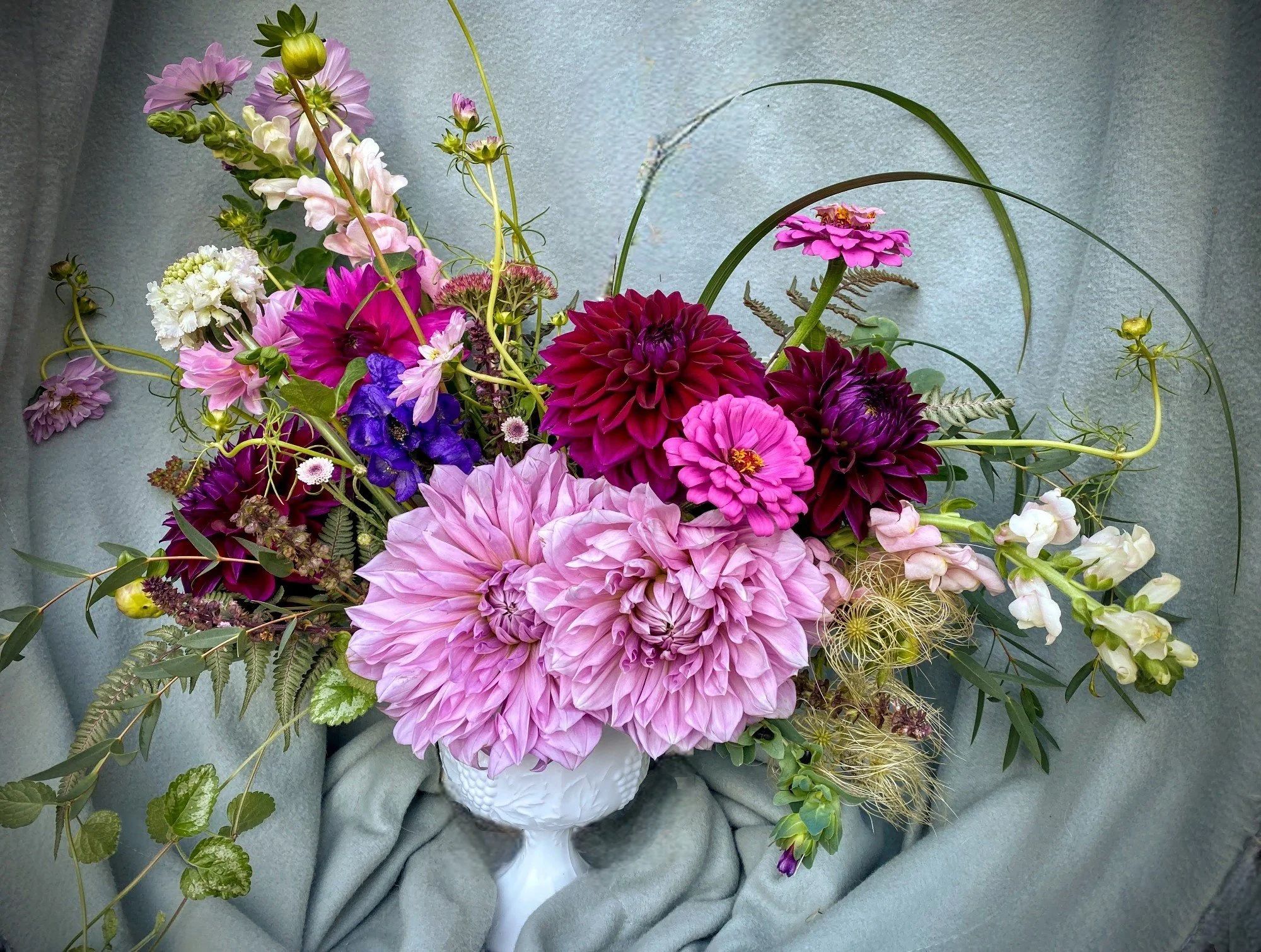 The flowers shown are only examples of the seasonal blooms used throughout our arrangements; each one thoughtfully selected and ever-changing with the rhythms of the farm.